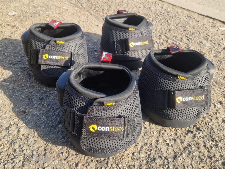 Die Hufschuhe gibt es in verschiedenen Größen und können barhuf oder mit Beschlag (Eisen, Duplos etc.) verwendet werden.
